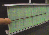 The first layer of coarse fibers capture the largest dust particles, while the medium and fine fiber layers trap the largest volume of small particulate. The final layer of sticky tackifier locks the dust particles into the filter so they don’t migrate downstream.